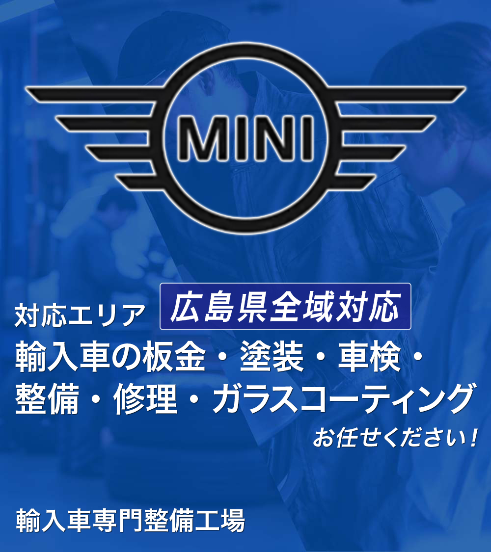 【MINI-COOPER】ミニクーパーの車検整備・故障修理・鈑金修理・板金塗装|【広島】輸入車(外車)修理・車検・板金塗装の